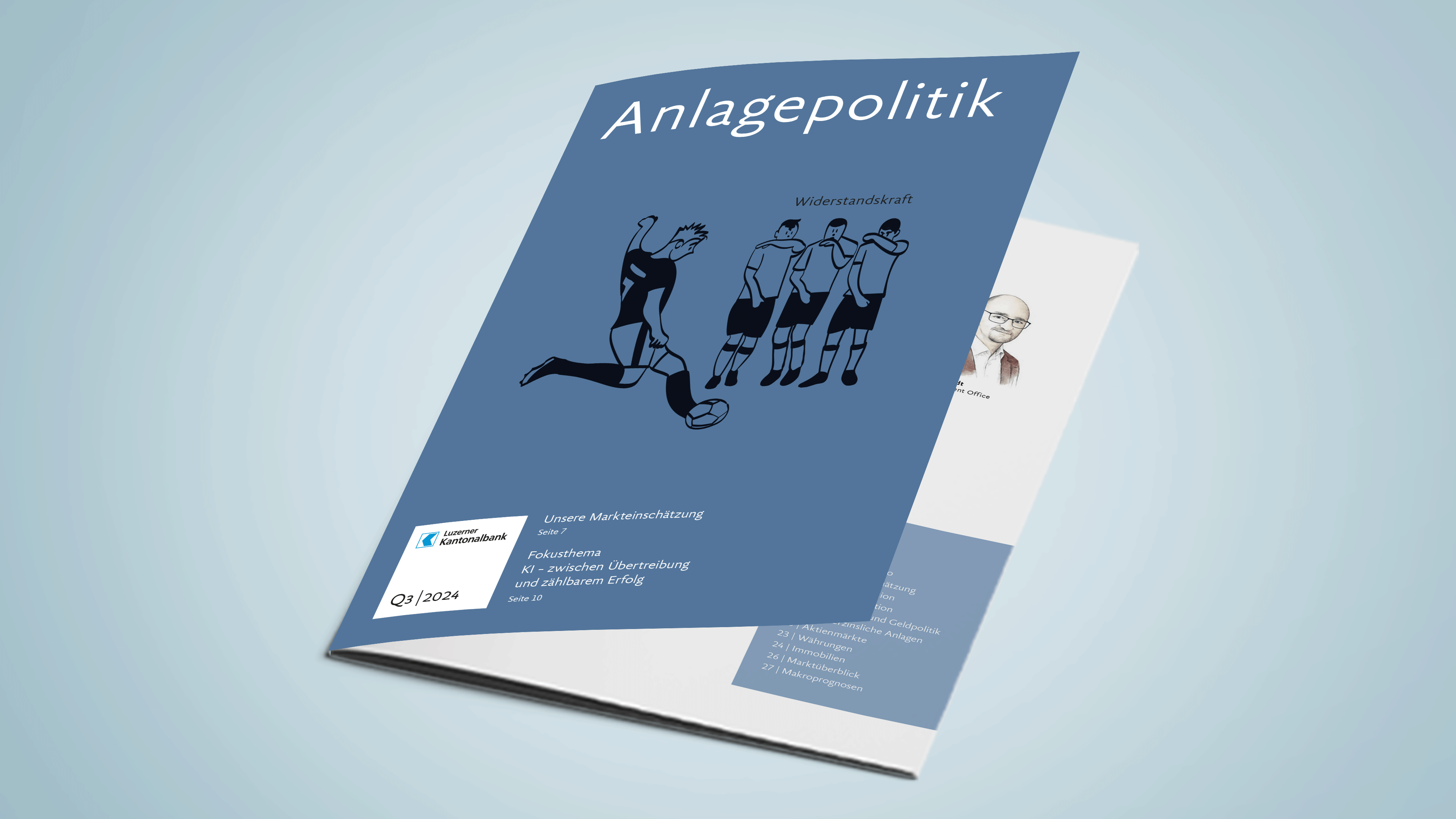 Die viermal jährlich erscheinende LUKB Anlagepolitik fasst die Einschätzungen der LUKB-Expertinnen und -Experten zur Entwicklung der Finanzmärkte sowie der Schweizer und globalen Wirtschaft zusammen.