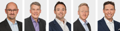 v. l. n. r. Björn Eberhardt (Leiter Investment Office), Brian Mandt (Chefökonom), Josh Bouchard (Investment-Stratege), Reto Lötscher (Leiter Finanzanalyse), Thomas Eyer (Fondsanalyst)