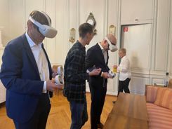 Darauf folgte ein Impulsreferat von Lukas Jud, der mit seinem Luzerner Unternehmen Web Lernen bereits Nachhilfeunterricht im Metaverse anbietet. Vor Ort bestand die Möglichkeit, eine VR-Brille aufzusetzen und sich ein Bild von der Nachhilfe im virtuellen Raum zu machen.